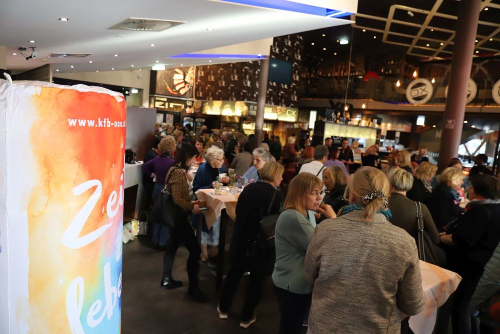 Nach dem Ankommen bei Aperitif und Fingerfood wurde die aktuelle kfb-Kampagne präsentiert. Im Mittelpunkt stehen fünf engagierte Frauen, die als Botschafterinnen der kfb zeigen, wie bunt und vielfältig Oberösterreichs größte Frauenorganisation ist und wie vielfältig die Themen und Angebote sind. Ziel der Kampagne ist es, die bestehenden Mitglieder zu motivieren und zu aktivieren und neue Frauen für die Gemeinschaft der kfb zu begeistern.