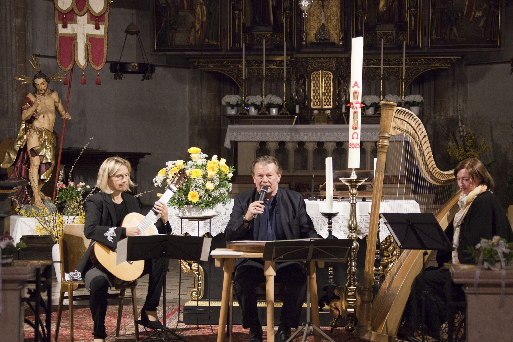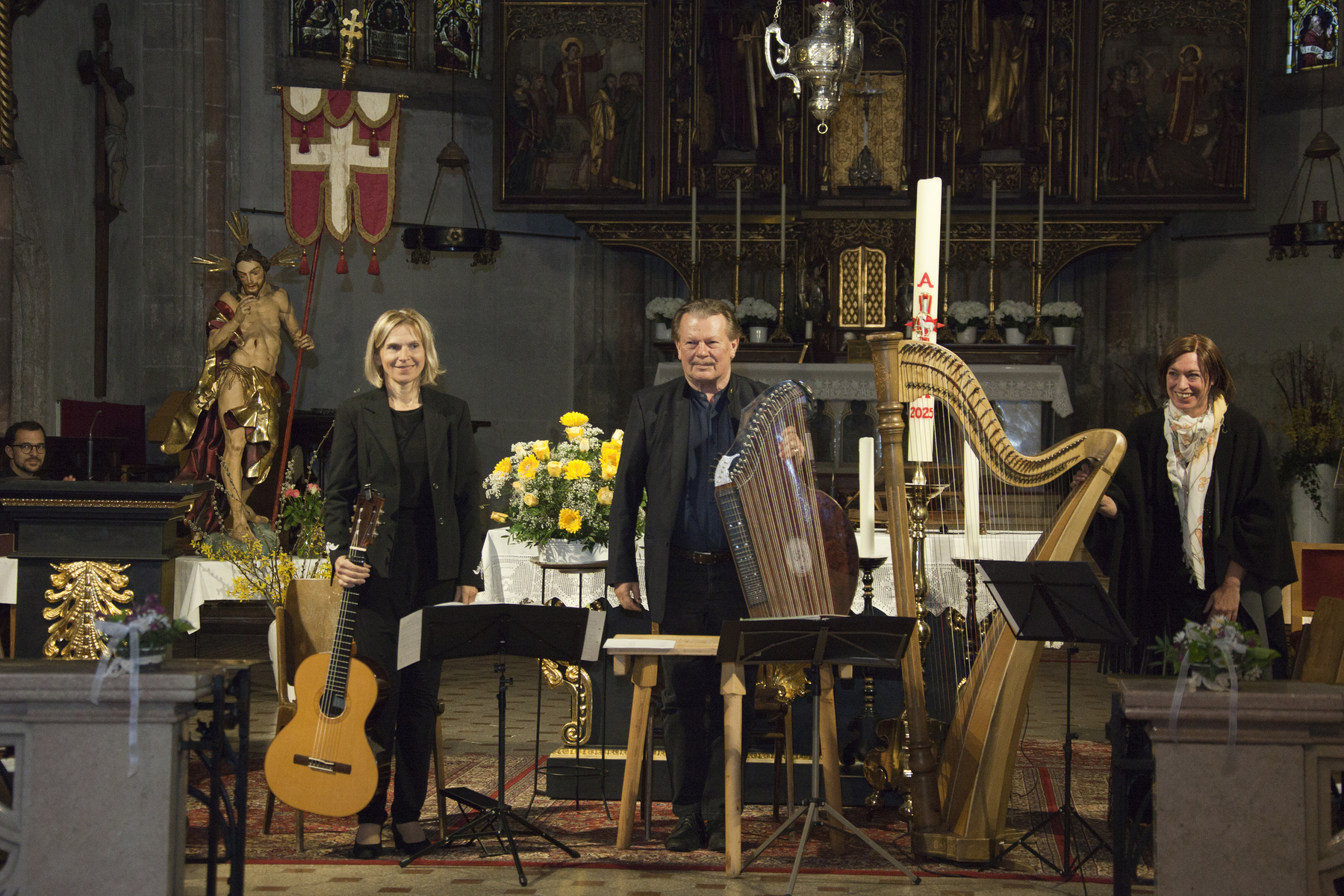 Mit den stimmungsvollen Klängen der Werke der großen Meister der Klassik, Volksmusik und eigenen Stücken in der Stadtpfarrkirche Braunau-St. Stephan unterstützten Prof. Wilfried Scharf und das Ensemble Salzburger Saitenklang die Pfarrgemeinde bei der Aufbringung der hohen Kosten der Kirchenrenovierung. Der allseits bekannte Zither-Virtuose wurde dabei von Sabine Kraus an der Harfe und Roswitha Steindl an der Gitarre begleitet. Mit seinen verbindenden interessanten Worten führte Wilfried Scharf die zahlreichen BesucherInnen bereichernd durch den Abend.