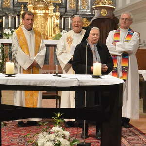 Die ehemaligen Bewohnerinnen des Schülerinnenheimes in der Rosenstraße haben zum Thema "Alles im Leben hat seine Zeit" einen wunderschönen Gottesdienst vorbereitet. Hervorzuheben ist auch die musikalische Gestaltung, die netten Worte der Zelebranten Dr. Josef Ahammer, Mag. Helmut Part und Dr. Martin Füreder, die besonders gut besuchte Kirche und das Trompetensolo von Pfarrer Part. All das zeigte die Wertschätzung der Verdienste von Sr. Luitgard.