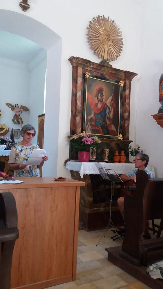 In dem kleinen Kirchlein, die dem hl. Nikolaus geweiht ist, hielten wir eine Andacht, die von Gisela Geyerhofer auf der Gitarre musikalisch begleitet wurde.