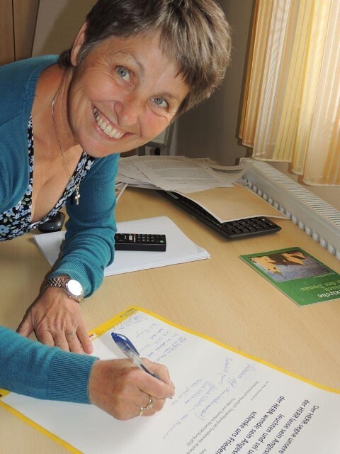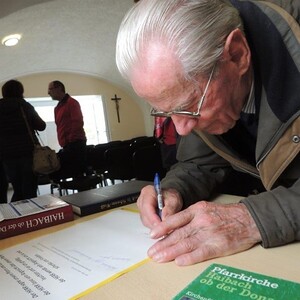 Am Ende der Präsentation konnten die Besucher am neuen Dokument, welches der Zeitkapsel beigelegt wird, persönlich unterschrieben.