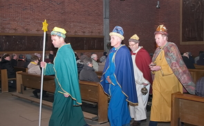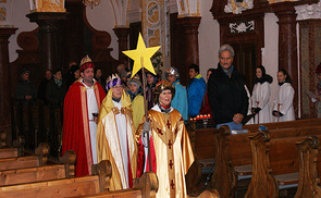 In der Pfarre Braunau St. Stephan zogen die Könige feierlich mit den Kindern bei der zur Dreikönigsandacht am 6. Jänner 2017 in die Kirche ein.