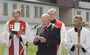 Bei idealem Bergwetter und feierlich umrahmt von einer Bläsergruppe der Stadtkapelle Braunau feierten die BraunauerInnen vor der ältesten Holzkirche Österreichs die Sonntagsmesse.
