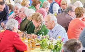 Zu einem Fest für Jubelpaare lud die Pfarre Hirschbach am Pfingstmontag, 20. Mai 2024. Zehn Paare feierten in der Pfarrkirche und mit einer an den Gottesdienst anschließenden Agape ihre Ehejubiläen.
